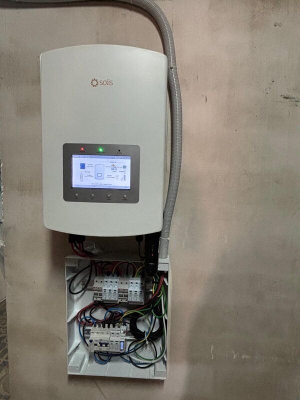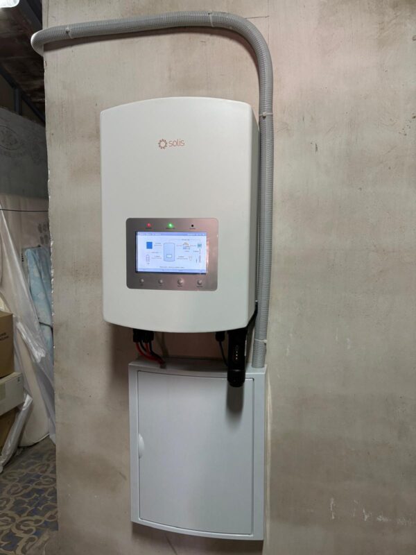 La instalación se completa con un inversor Solís de 6 kW, que convierte la energía solar en electricidad lista para el consumo y permite monitorizar el sistema en tiempo real.