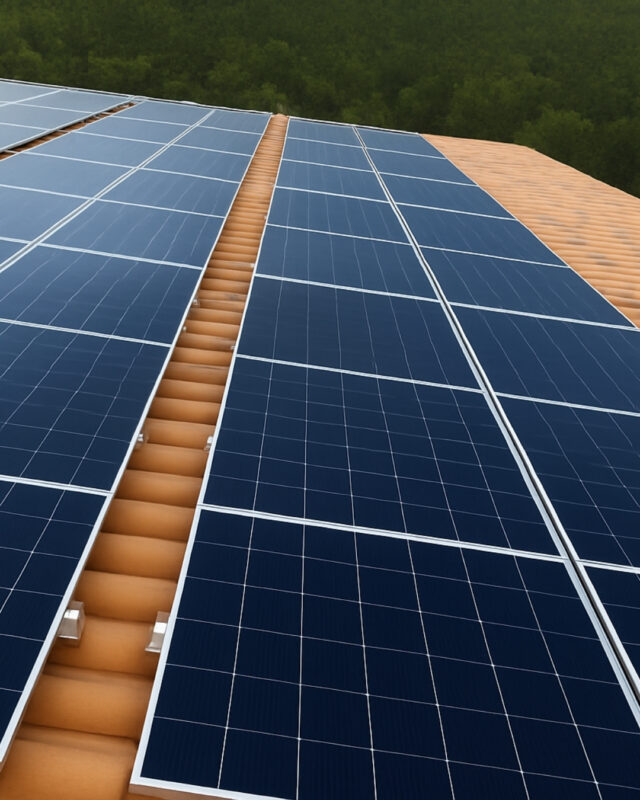 Los paneles solares se colocarán sobre una estructura metálica coplanar, siguiendo la inclinación natural de la cubierta, de aproximadamente 15 grados. Esta solución permite una integración eficiente sobre la cubierta existente, sin alterar de forma significativa la infraestructura del edificio y aprovechando al máximo el espacio disponible.